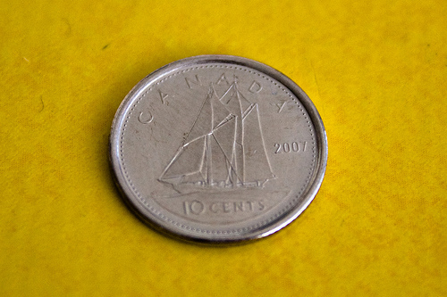 It’s full of houses like that, all painted different colours! Lunenberg is also home of the Bluenose II, featured on our dime: