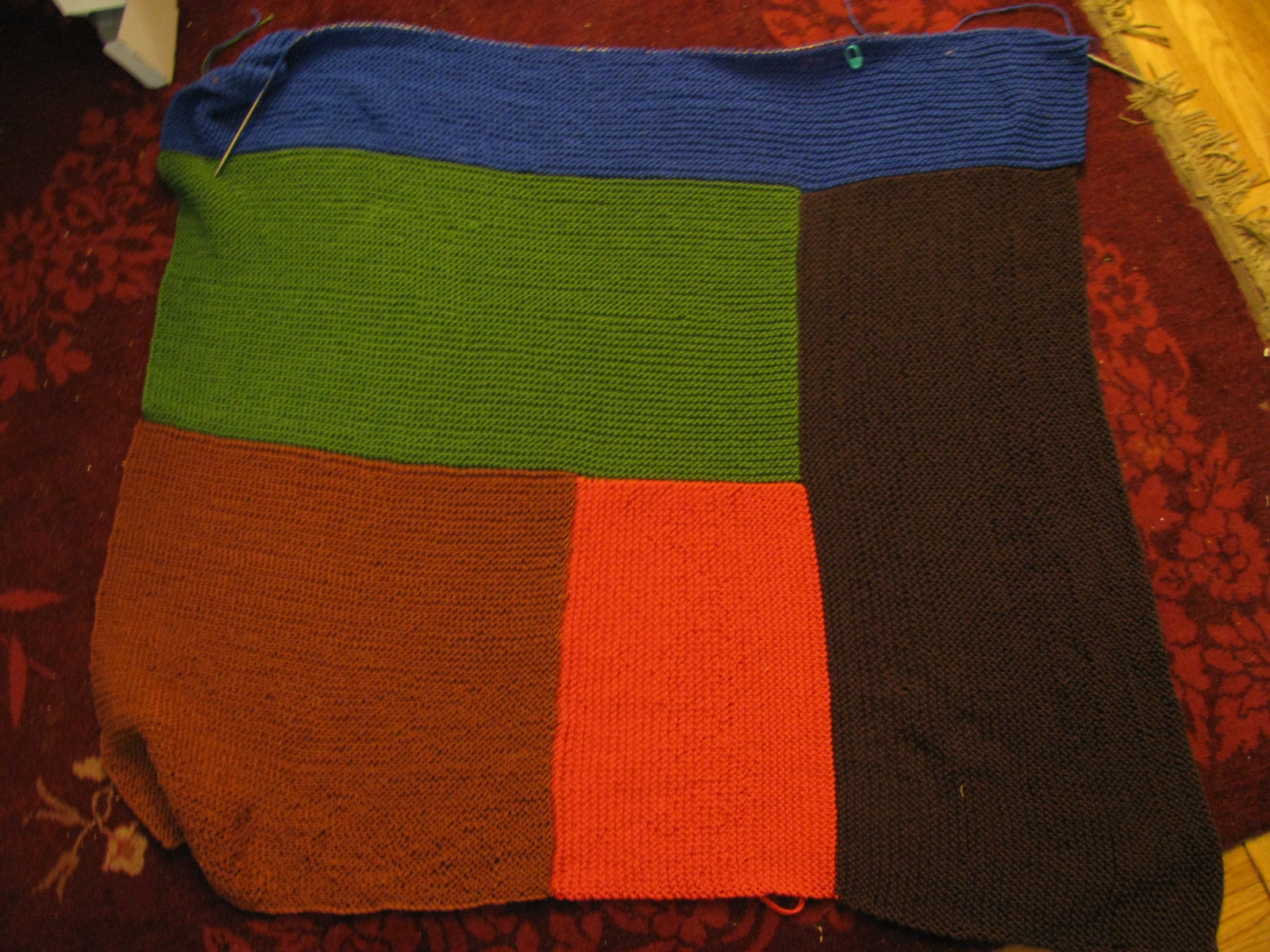 What I managed to do over the two days: finish the green, add the dark brown on the right side, and start the blue.